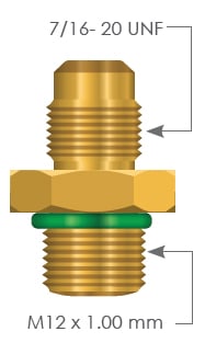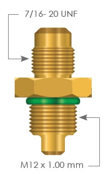 Male flare (7/16- 20 UNF) into compressor port M12 x 1.00 mm