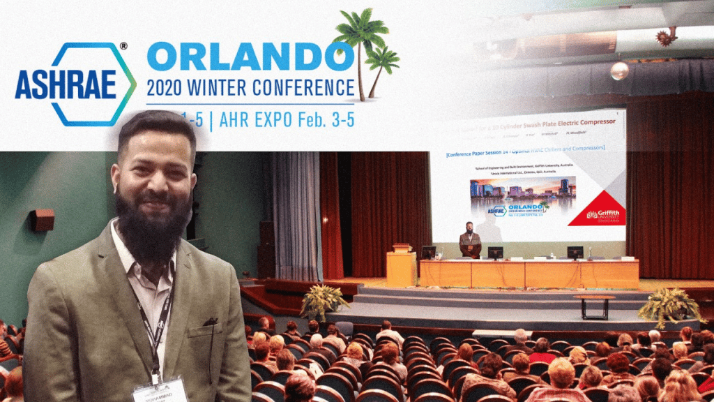 Griffith University PhD candidate Mohammad Arqam delivered a presentation based on research conducted during the development of Unicla International’s eDrive compressors at the ASHRAE Winter Conference in Orlando, Florida, this month.