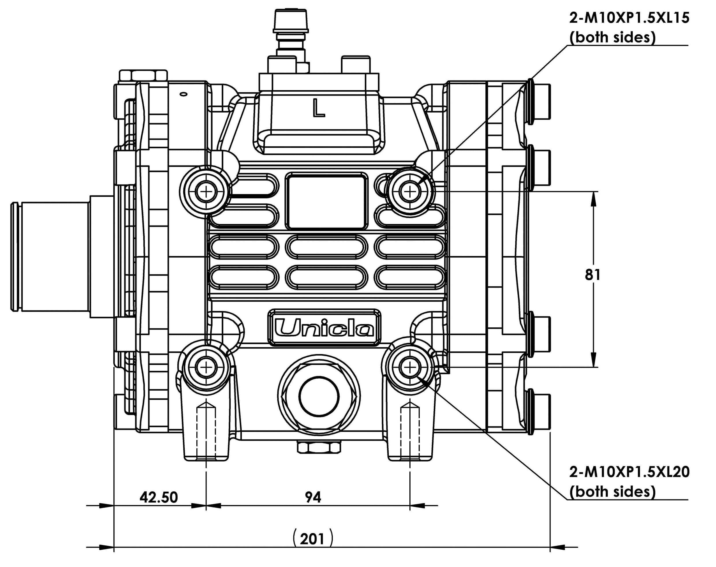 The Multi Direct Mounting system on UN models provides a total of eight mounting points (four on both the left and right sides), enabling direct compatibility with Denso 10P30B compressors. Mounting points on each side of the compressor are 94 mm and 81 mm apart.