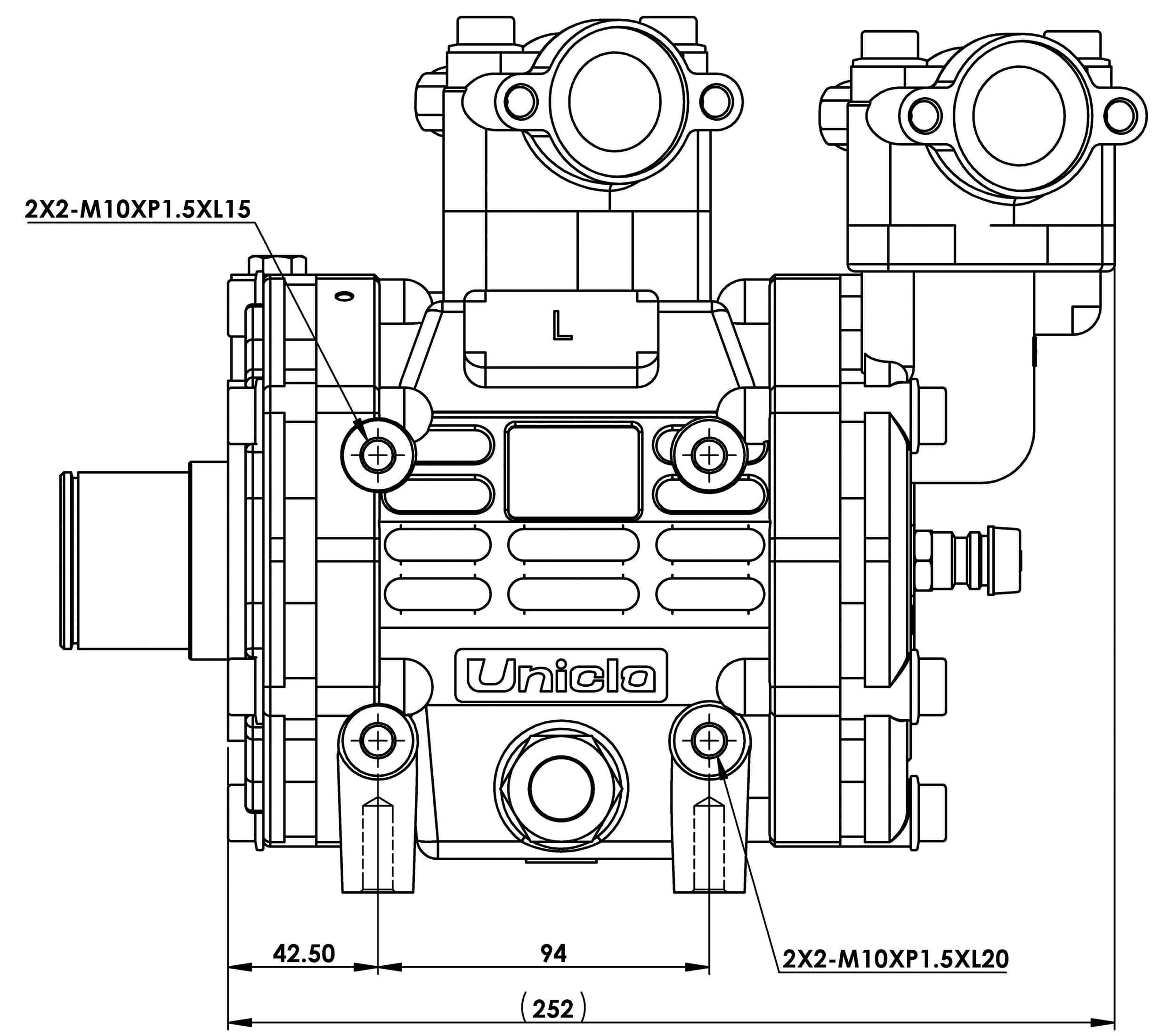 The Multi Direct Mounting system on UN models provides a total of eight mounting points (four on both the left and right sides), enabling direct compatibility with Denso 10P30B compressors. Mounting points on each side of the compressor are 94 mm and 81 mm apart.