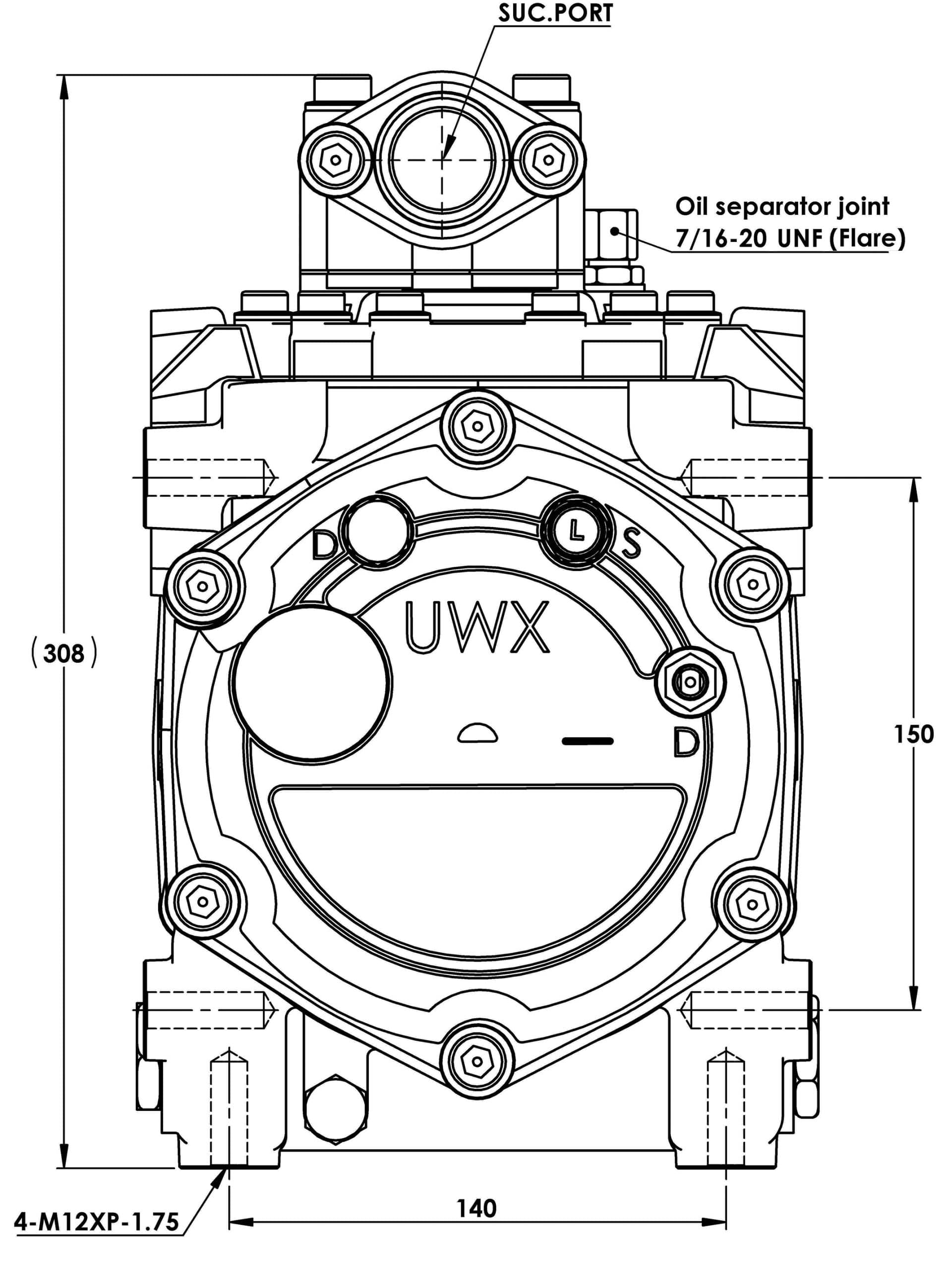 An oil return fitting – 7/16-20 UNF male flare (Part No. 42203-000160) – is fitted on top of the compressor. It has a unique flow design suited to the Unicla oil separator (Part No. OS000050) and is interchangeable with the low-side service valve.