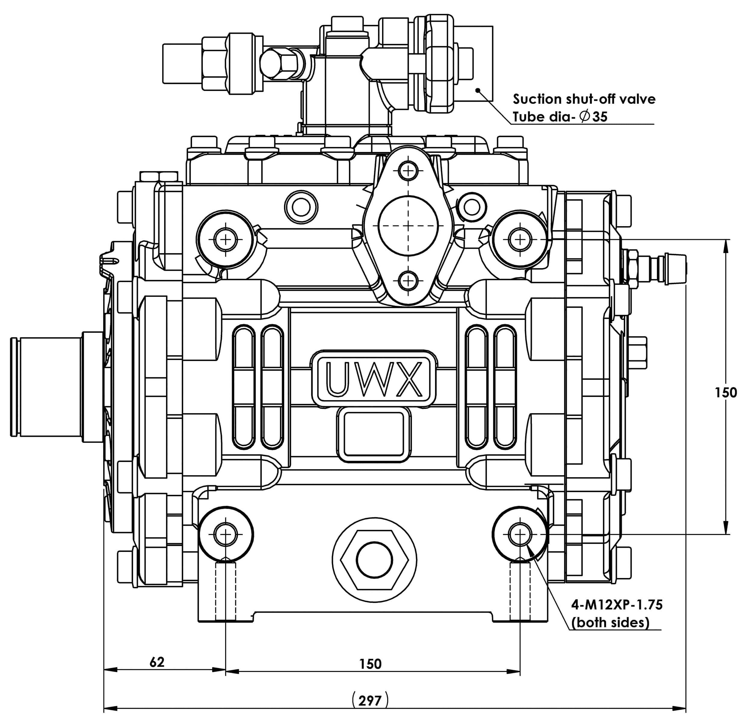The suction port is located on top of the compressor and the discharge port can be taken from either the left or right side. Both ports are fitted with a shut-off manifold assembly with back seating capability via stem valves.